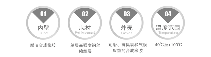 | 標準直徑 NominalΦ | 內徑 Inside | 織絲層直徑 BiardΦ | 外徑 OutsideΦ | 工作壓力 Working pressure | 檢測壓力 Test pressure | 爆裂壓力 Burst pressure | 彎曲半徑 Bend radius | 重量 Weight | ||
